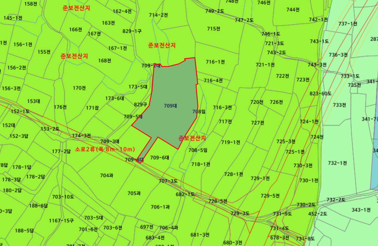 2. 지목 및 용도지역 : 대지(도시지역, 생산녹지지역, 소로2류, 가축사육제한지역)